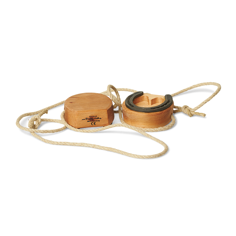 These wonderful bucket stilts are made of solid alder and come with a real horseshoe attached. A hoof shape has been hollowed out of the base so that the stilts make the realistic clip-clopping sound of horses’ hooves, and even leave a horseshoe imprint on paths and in playgrounds.
