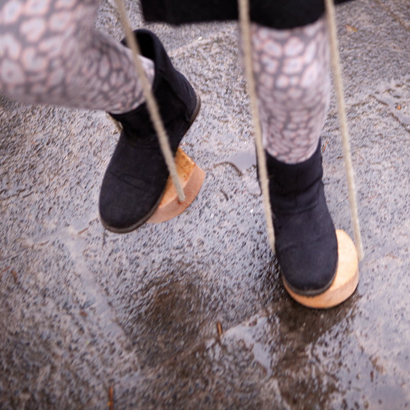A hole is drilled through the wood for inserting the untreated hemp rope. The length of the rope handles can easily be adjusted for different heights with a simple (flat) knot. The bucket stilts are a lot of fun and also have therapeutic benefits: they develop a sense of balance and coordination. And, just as important, encourage children to get out into the fresh air and be active!