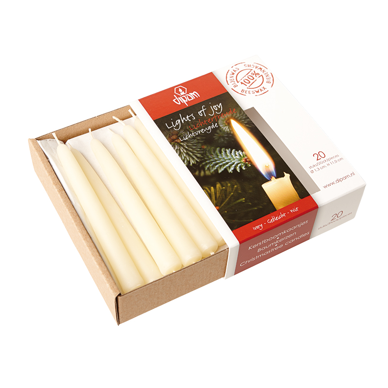 Dipam Beeswax Christmas Tree Candles 20 Pieces – Ivory/White