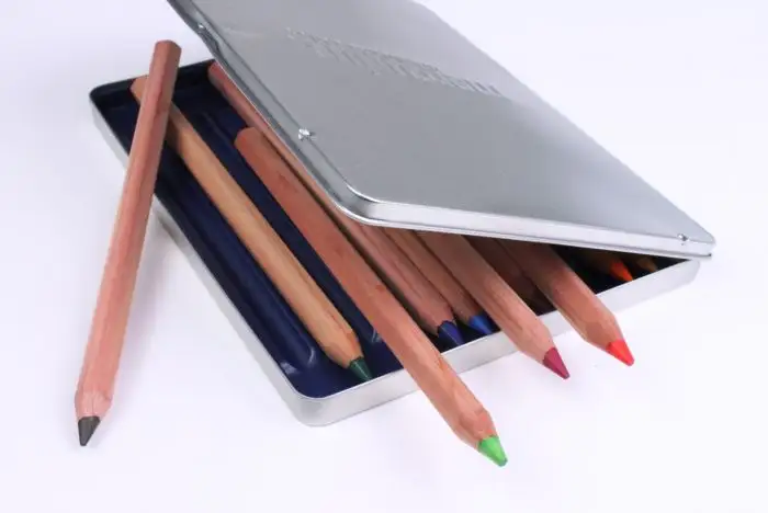 Metal tin, 12 pencils, length: 175 mm, diam. 10 mm, lead diam. 6.25 mm
