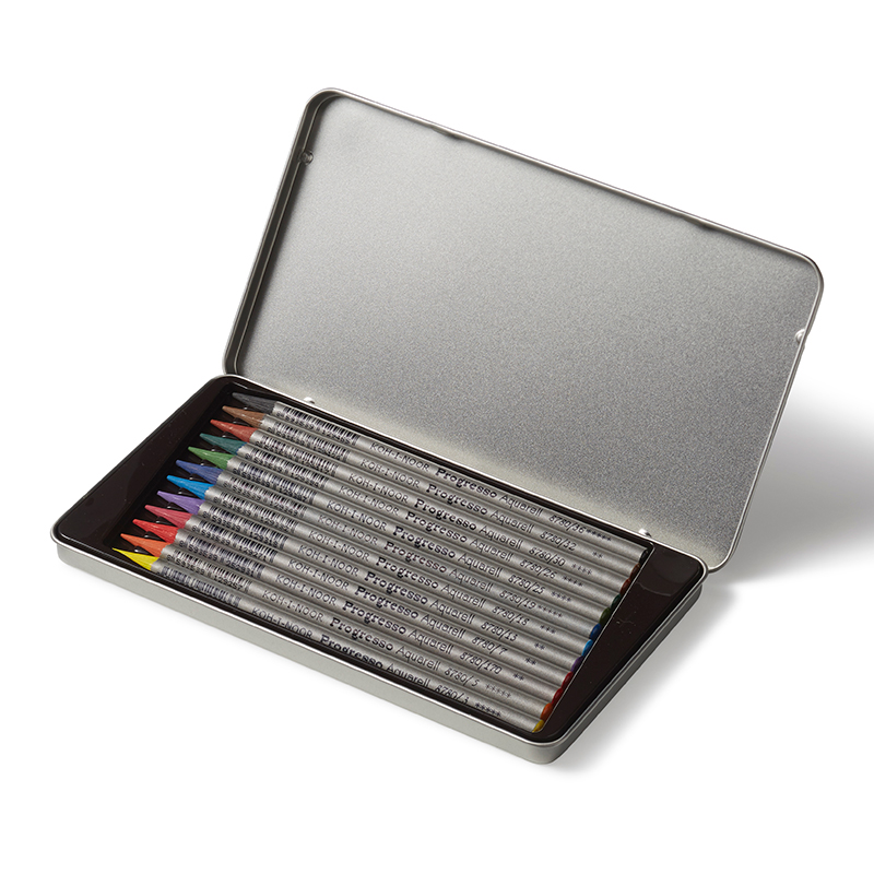 Progresso Woodless Watercolour Pencils Lacquered Tin Case – 12 Assorted colours