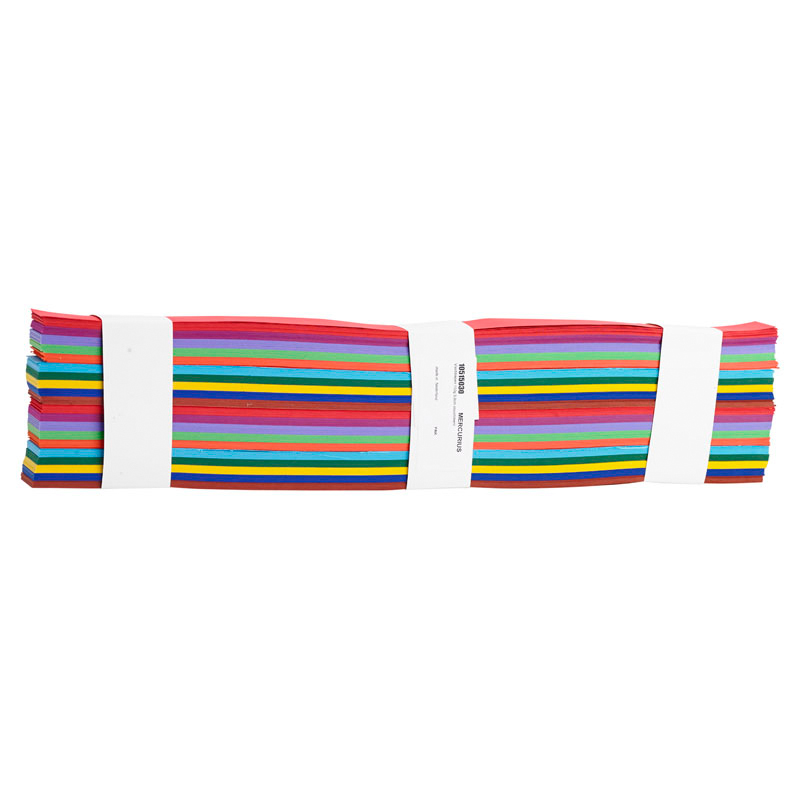 Great for paper weaving, garlands and more. The thinnest size (10mm) works for quilling. The widest size (60mm) is also perfect for making coloured crowns. These strips are 50 cm long. Packed in packs of 500 strips in 10 colours, available in 5 widths.