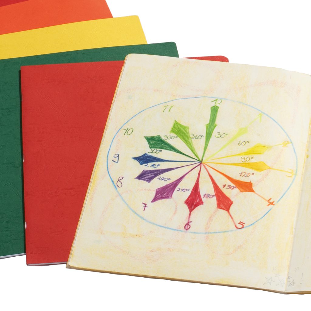 Packing unit: 10 books, stapled bound, 32 pages, portrait format, 32×38 cm, blank, no onion skin, 6 colours available.