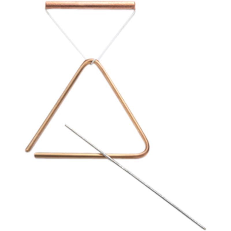 Generally, bronze has a lingering sound and a warm colourful timbre, while iron gives a shorter, stronger, elemental sound. Pentangles usually sound lighter and higher than triangles, and, the bigger the instrument, the longer and more intense, though not necessarily deeper, the tone. All triangles and pentangles come in a set with an embossed copper handle and a matching mallet.