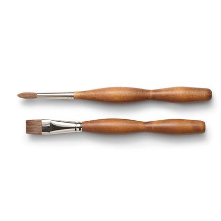 The brushes are soft, flexible, resistant to damage and the absorption and release capacity is amazingly high. By opting for a synthetic paint brush, it is also the animal-friendly option. They are worthy of our special quality mark art makes sense (AMS). These brushes are provided with a brown wax coating.